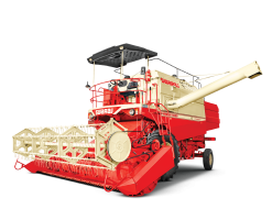 Technical Specifications Threshing Mechanism: Thresher Drum Width: 1250 mm for wheat, paddy, and maize. Speed: 540-1200 rpm, adjustable via mechanical variator. Straw Walker: Number: 5 straw walkers with 5 steps. Length: 3770 mm, width: 235 mm. Cleaning Sieves: Upper sieve area: 1.77 m². Capacity Grain Tank: 2.5 m³. Fuel Tank: 365 liters. Dimensions Working Dimensions: Length: 8370 mm, Width: 4665 mm, Height: 3850 mm. Transport Dimensions: Length: 12450 mm, Width: 3035 mm, Height: 3850 mm. Total Weight: Approx. 9120 Kg with trailer. Engine Specifications Model: SL – CH101 Samrat. Power: 101 HP Ashok Leyland engine with 6 cylinders. Cooling System: Water-cooled. Clutch and Transmission Clutch Type: Single, heavy-duty dry clutch (330 mm diameter). Gears: 4 forward and 1 reverse. Speed Range: Varies by gear, with forward speeds from 1.8 km/hr to 25.5 km/hr. Cutter Bar Mechanism Width: 4.3 mm for wheat and paddy. Blades: 58 blades and 29 guards. Cutting Height: Adjustable between 65 mm to 1275 mm.